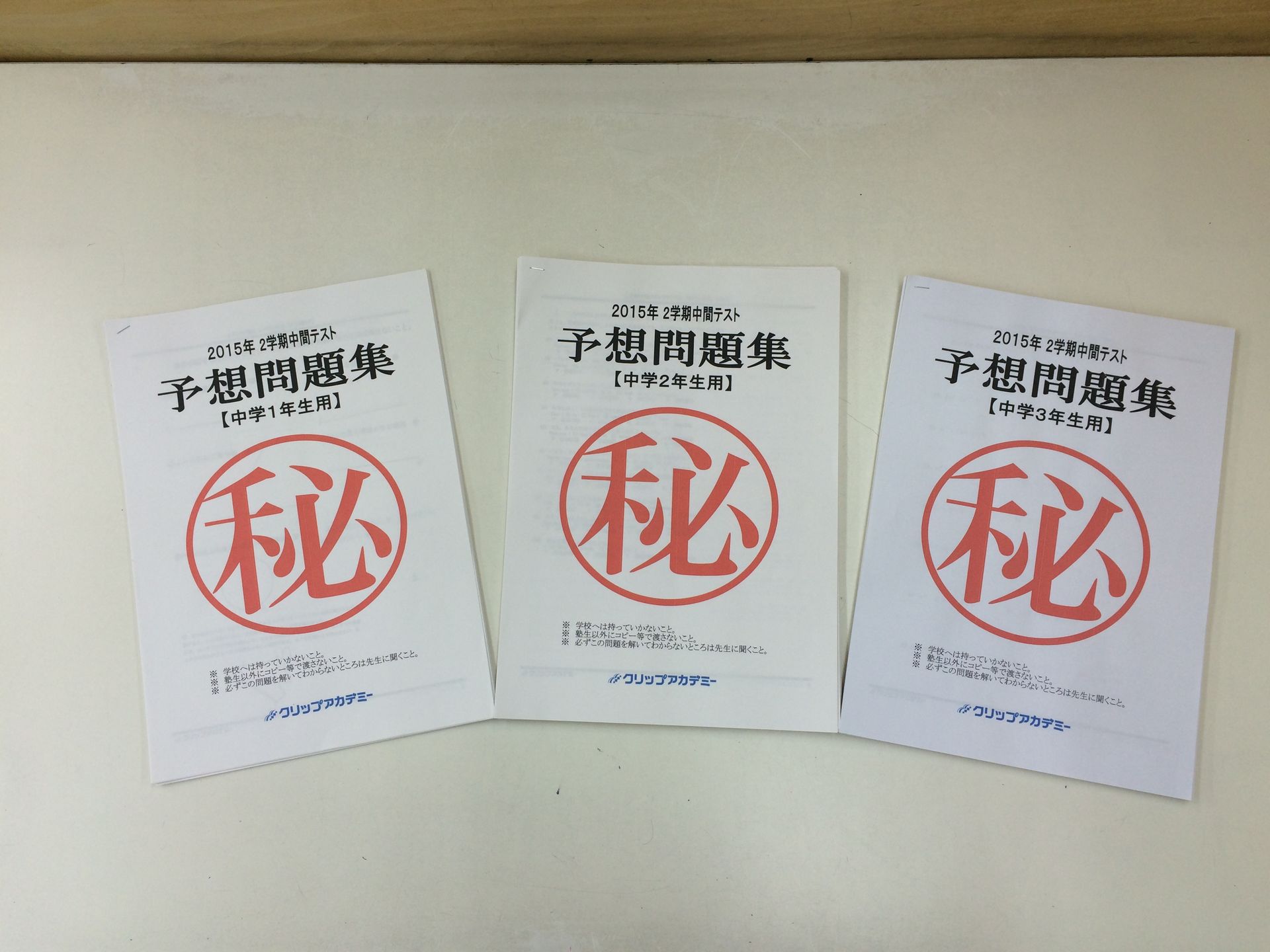 鹿骨校舎の石垣です。 鹿骨校舎の中学生のほとんどが通う鹿骨中、春江中、篠崎中、小岩五中、小岩二中は来週からが2学期の中間テスト。当校舎では今日と来週の土曜にテスト対策を実施しています。 これがテスト対策に使う・・・ 予想問題集です。各中学の過去のテスト問題から「今年はこんなのが出る」みたいな分析をしています。 その集大成がこれ! 塾の講師としてこの辺が腕の見せどころ。 当たれ~、みんな覚えろ~、がんばれ~ と心から願う1週間です。