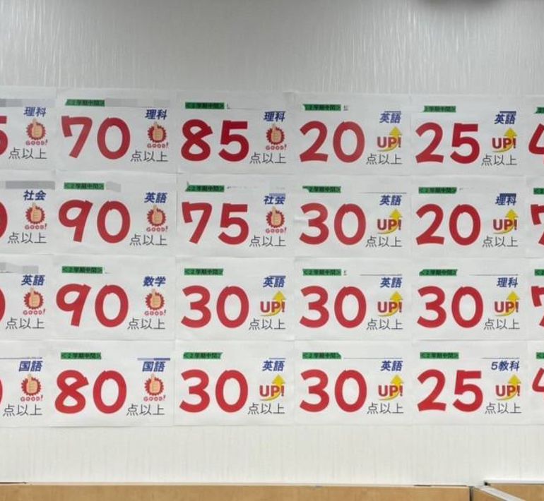 いつも壁いっぱいに成績UP・優秀者の声が張られています!!